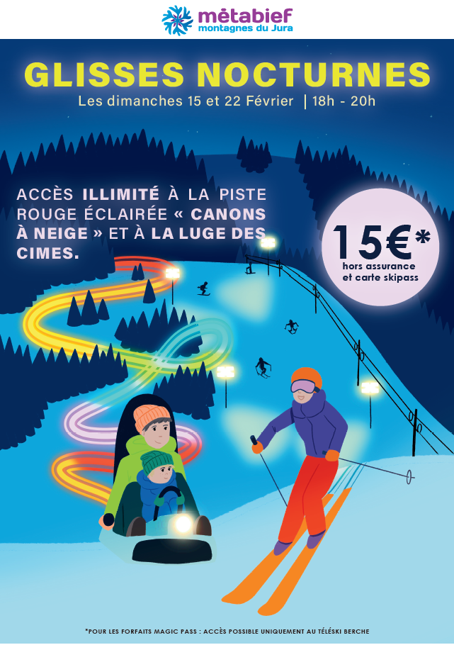 - ESI Métabief : Chaque jeudi des vacances de Février / En raison des conditions météo, décalage de la nocturne au vendredi 13 Février.